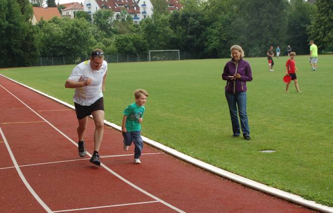 Am Start der 3.000m fürs Sportabzeichen beim Sportlertag der SG Moosburg am 22. Juni