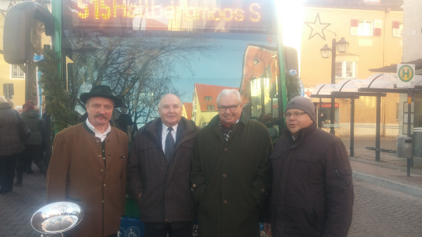 Was lange währt wird endlich gut. Seit Sonntag, 13.12.2015 fährt die neue Buslinie 515 vom S-Bahnhof Hallbergmoos über Goldach, Notzingermoos, Notzing und Aufkirchen nach Erding. Bei der Jungfernfahrt mit von der Parte: Die SPD Fraktion Hallbergmoos, die auch die entsprechenden Anträge 2011 und 2013 einreichte, die Bürgermeister Gotz (Erding), Mücke (Oberding) und Reents (Hallbergmoos), der Freisinger Landrat Hauner und der stellvertrende Landrat Schwimmer aus Erding. Auch Ortsvereinsvorsitzender Max Kreilinger mit seinen Goldacher Buam war mit von der Partie.