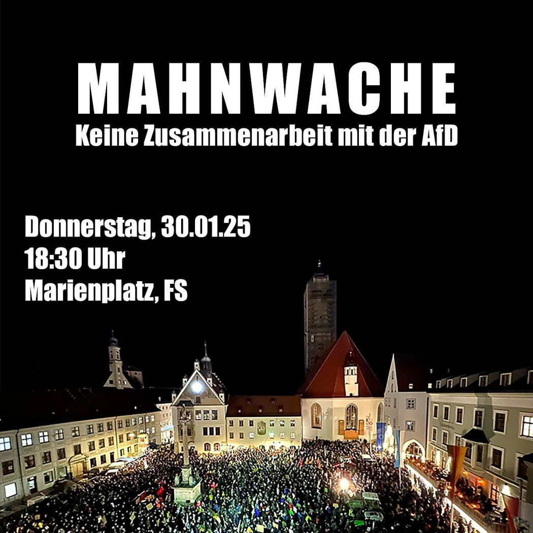Um klar dagegen Stellung zu beziehen, dass Union und FDP nun mit den Rechtsextremen im Bundestag gemeinsame Sache machen, organisieren JUSOS und GRÜNE JUGEND in Freising eine Mahnwache.