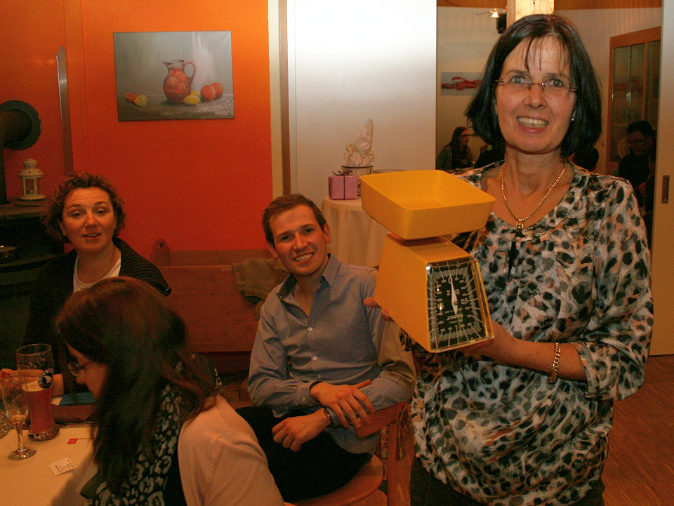 Auch diesmal wechselten diverse Schrecklichkeiten den Besitzer: hellblaue oder schwarzgoldene Vasen, blütenverzierte Dosen, oder eine quietschgelbe Küchenwage aus einem längst vergangenen Jahrzehnt sorgten für entsetzte Gesichter bei den Empfängern und für Begeisterung bei den Zuschauern.