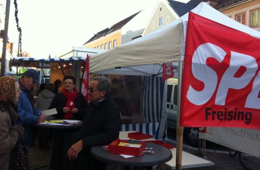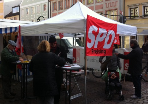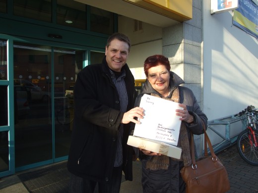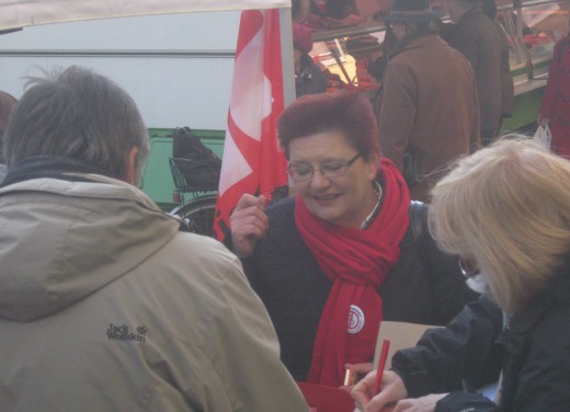 An einem sonnigen Samstagmorgen im Dezember 2011 sammeln OB-Kandidatin Eva Bönig und ihre Mitstreiter fast 300 Postkarten an Christian Ude, mit denen Bürgerinnen und Bürger ihre ablehnende Haltung gegen die 3. Startbahn zum Ausdruck bringen.