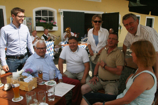 Zu einem Frühschoppen mit den "Goldacher Buam" um Max Kreilinger lud der SPD Ortsverein Hallbergmoos-Goldach am ersten Sonntag in den Sommerferien in den Garten des Alten Wirts in Goldach. Viele Besucher sind der Einladung gefolgt und ließen sich neben Bayerischer Volksmusik vor allem Weißwürst´schmecken.