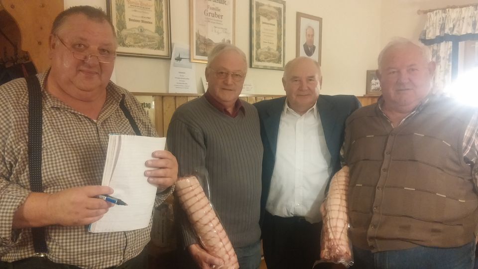 In ruhiger harmonische Atmosphäre suchten unter Aufsicht von Spielleiter Hermann Sedlmeier die Teams ihre Besten und gegen 23.00 Uhr standen die Sieger fest. Michael Hausner und Hans Kronast konnten sich mit 188 Punkten an die Spitze setzen und sich über 3 Kilo Fleisch und Wurst freuen. Den zweiten Platzen belegten mit 182 Punkten Heinz Grill und Adi Gaisbauer gefolgt von Josef Scherer und Günter Niedermeier, die nur 1 Punkt weniger erspielten. Neben Wurst und Fleischpreisen gab es noch einen von Josef Rötzer gespendeten Hubschrauber-Rundflug zu gewinnen über den sich Franz Holzmann und sein Partner Peter Müller