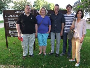 Markus Grill, Katharina Grill, Peter Warlimont, Andreas Mehltretter und Beate Frommhold-Buhl (sowie Fotograf Gerhard Schlegel) wünschen dem neu gewählten PR am Landratsamt bei seiner wichtigen Arbeit Erfolg, Überzeugungskraft, Durchhaltevermögen und einen aufgeschlossenen Arbeitgeber.