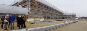 Eine moderne Doppel-Sporthalle wird nicht nur den Schülern, sondern auch den örtlichen Sportvereinen zugute kommen ... man kann hier zwar noch nicht sporteln, aber man sieht, dass es großzügig und hell sein wird.