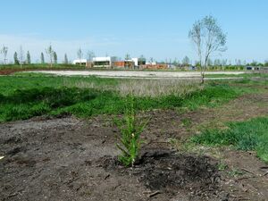 Gleich zwei europäische Lärchen pfanzten die Hallbergmooser Genossen am Tag der Arbeit 2012 an der Predazzo-Allee.