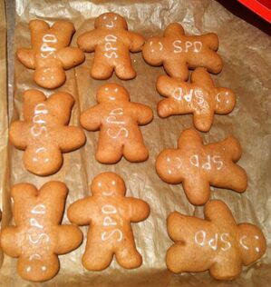 Es wurde fleißig Teig ausgerollt, die Formen ausgestanzt und die ideale Backtemperatur und –Zeit gewählt. Anschließend dekoriert mit Gesicht und SPD-Logo in Zuckerguss.