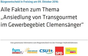 Am 9. Okt. entscheiden die Bürgerinnen und Bürger Freisings über die Ansiedlung einer Niederlassung des Lebensmittel-Spediteurs Transgourmet, der von Schweitenkirchen nach Freising ziehen möchte.