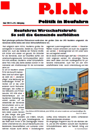 Die neue Ausgabe des PINs der SPD Neufahrn ist im Juni 2017 erschienen. Darin berichten wir über:
