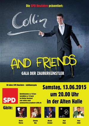 50 Jahre SPD Neufahrn, das ist ein Anlass, um sich etwas Besonderes einfallen zu lassen: Sechs Zauberer kommen aus ganz Deutschland nach Neufahrn und bieten den Gästen eine Gala, wie es sie hier noch nicht gegeben hat. Von Mentalmagie über Taschenspielertricks wird eine Vielfalt an Zaubertricks geboten, und jeder der Zauberer hat seine ganz persönliche Art und Weise, um die Zuschauer in seinen Bann zu ziehen.