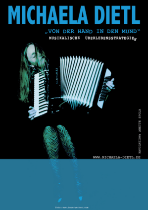 „Von der Hand in den Mund“ ist der Titel des Abends. Mit ihrem Akkordeon wird Michaela Dietl mit nachdenklich-humorvollem Kabarett musikalische Überlebensstrategien präsentieren.
