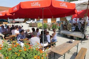 Der Ortsvereinsvorsitzende Max Kreilinger, der von 14.00 Uhrbis in die Abendstunden, mit seinen Goldacher Buam zünftige Blasmusik aufspielte, freute sich dass trotz der Hitze an die 100 Gäste gekommen waren. Im geselligen Rahmen wurde so mancher politische Gedanke ausgetauscht.