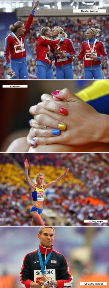 Ich freue mich sehr darüber, dass vier mutige Frauen und ein mutiger Mann bei der Leichtathletik-WM in Moskau den Mut und den Willen hatten, gegen die in Russland Gesetz gewordene Diskriminierung von Homosexuellen Zeichen zu setzen ...